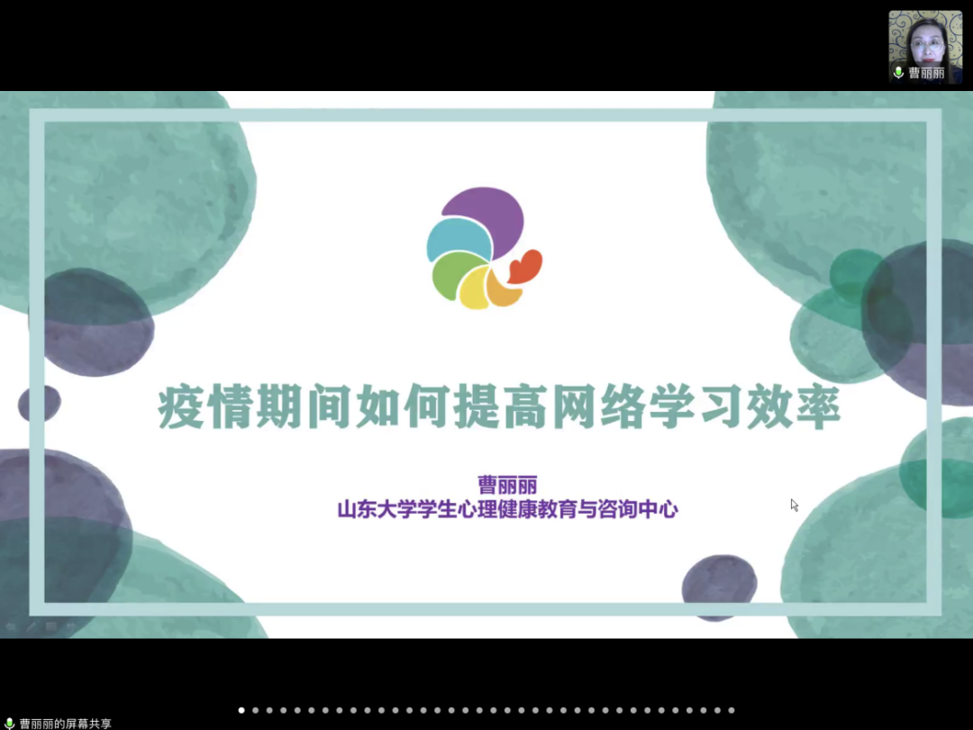 曹丽丽老师的讲座生动有趣、深入浅出,讲座氛围轻松融洽。在互动环节中,同学们积极反馈疫情发生后自身经历的情绪和心理变化,交流自我调整过程与收获,并提出了自己目前存在的心理疑惑与问题。她针对同学集中反映的疫情期间学习心情浮躁、不能把握情绪的“度”的问题表示,情绪的发生都是有原因的,找出浮躁的具体原因是关键,同学们应当关注内心活动,觉察自身变化,放慢节奏,给自己多一些理解和接纳,从而找到适合自己的情绪调节方式。曹老师耐心地为同学们答疑解惑,并传达了“安全、安心、安稳”的美好祝愿。
