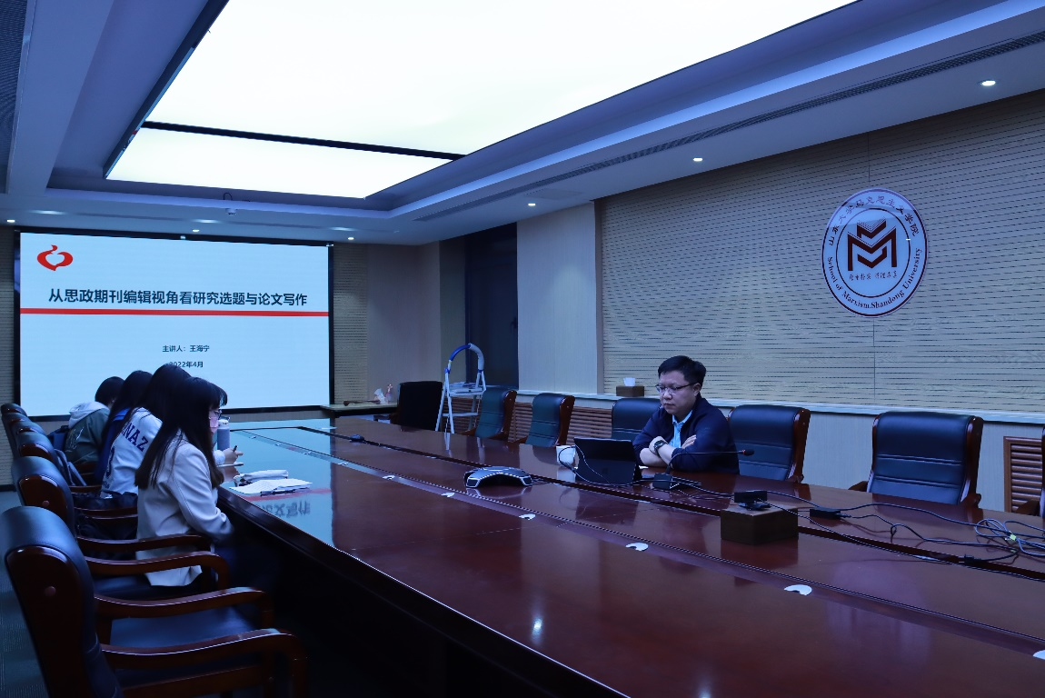 为激发同学们研究热情和研究兴趣,帮助同学们解决在日常学术研究及写作中遇到的问题,4月17日晚,WilliamHill威廉希尔党委副书记王海宁作为青马学术沙龙第一期主讲嘉宾,为同学们带来题为“从思政编辑的视角看研究选题看研究选题和论文写作”的交流分享。