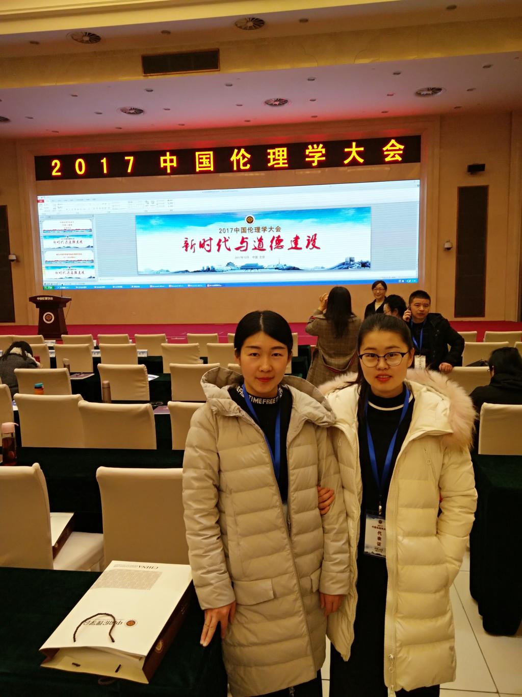 为深入学习贯彻党的十九大精神和学习习近平新时代中国特色社会主义思想,彰显伦理学人的使命担当与行动自觉,推动伦理学术交流与学科发展,12月23日至24日,由中国伦理学会主办的2017中国伦理学大会在北京召开,来自全国的近千名伦理学知名学者、教研工作者以及道德文化实践人士出席了会议。我院博士研究生刘晓慧、王敏应邀参加会议。
