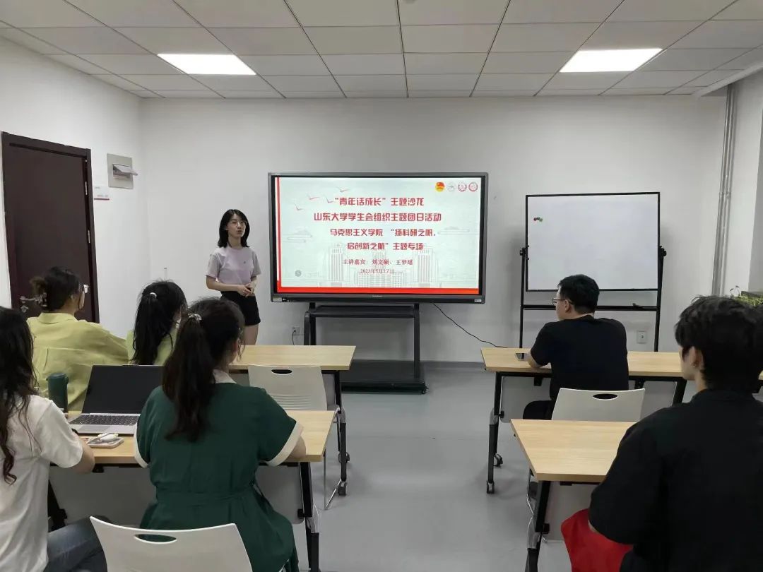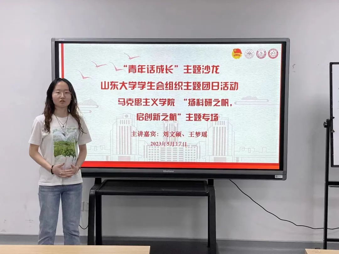 本次沙龙以“扬科研之帆,启创新之航”为主题,邀请了刘文硕、王梦瑶两位同学作为主讲嘉宾,针对专业学习、学术研究、科研创新、志愿服务等方面的问题进行主题宣讲,分享相关经验。