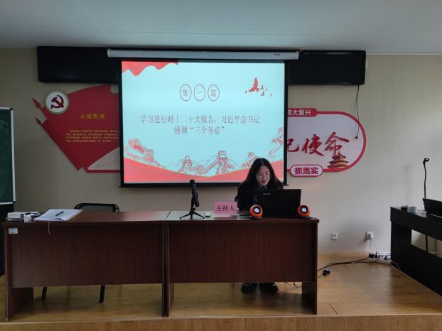 下午三点,宣讲活动正式开始。宣讲团成员张悦以“牢记‘三个务必’,谱写时代华章”为主题,从“三个务必”提出的背景、内容、意义三个部分进行了宣讲。宣讲团成员周顺洁围绕“自我革命——跳出历史周期率的第二个答案”这一主题展开宣讲,从“跳出历史周期率的第一个答案——民主监督”“跳出历史周期律的第二个答案——自我革命”“党员干部要发扬自我革命精神,勇担历史使命”三个方面,阐释了百年大党始终坚持自我革命的鲜明品格。