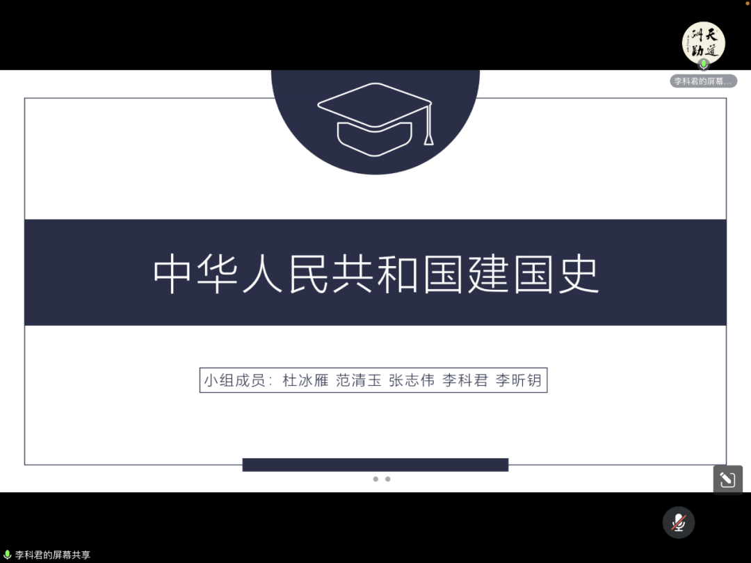 《党委会的工作方法》组的同学从写作背景、主要内容及感悟两个角度进行分享。《中华人民共和国建国史》组的同学通过阅读该书,得出了如下感悟:以史为镜,可以知兴替。通过了解过去的历史、总结以往的教训、学习以往的经验将其运用于现实的治理之中,或许这也正是回顾历史的真正意义之所在。《<黑格尔法哲学批判>导言》组的同学分享了该书的主要内容,马克思沿着宗教批判——哲学批判——实践批判的行文脉络,阐述了最终要达到人的解放的目标,真正体现了马克思对人的终极关怀,实现人的主体性的回归,深刻地凸显了马克思始终贯穿其中的人学向度。