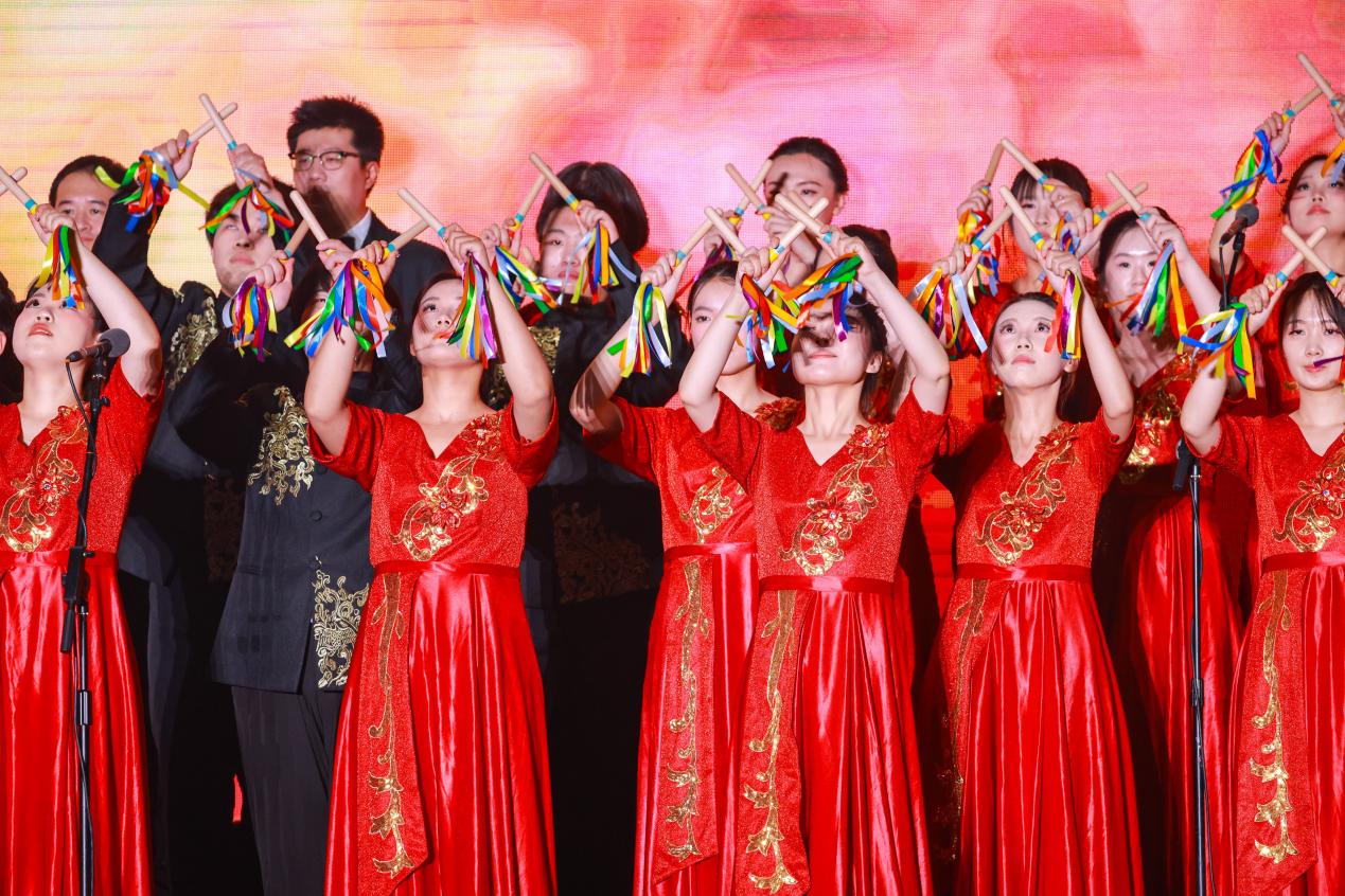 作为第十三支上场的队伍,学院“弦歌青马”师生合唱团以一首热血沸腾的《就是哪吒》惊艳全场,用歌声诠释无畏精神,点燃了每个人心中的火焰。“任他们说吧我眼中只有前方……”伴随着悠扬的钢琴和古筝的旋律,铿锵有力的歌声响彻整个场馆,刻画出哪吒“我命由我不由天”的倔强与无畏。师生合唱团气势如虹、和声嘹亮,整齐的击打动作更是提升了歌曲的展现力,助力歌曲在舞台上的完美呈现。