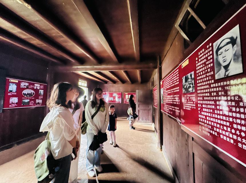上午,同学们首先来到小井红军医院开展现场教学。这座由毛泽东同志指示筹建、军民共同捐资1000块大洋建成的医院,是中国共产党历史上第一所正规红军医院。原建筑在第三次反“会剿”期间被敌人焚毁,现址为1967年按原貌重建。院内陈列的粗布被褥、生锈药罐和竹片担架等物品,生动展现了当年武器简陋、缺医少药的艰难岁月。尤其是张子清师长在无麻药手术中省下食盐让给战友,最终壮烈牺牲的事迹,深深触动了在场的每一位同学。通过触摸土墙、凝视旧物,同学们深刻体会到“艰苦奋斗”不仅是一段历史,更是一种跨越时空、历久弥新的精神力量。