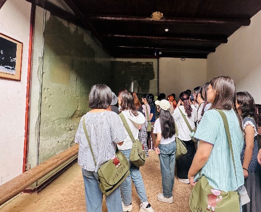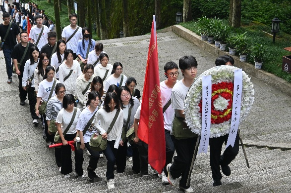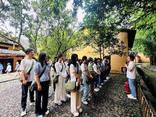 沉浸式实景教学激活历史记忆,让红色足迹可感可触。从革命烈士陵园到战斗遗址,从博物馆到红军旧址,每一处红色地标都是一堂生动的历史课。在井冈山革命烈士陵园,同学们列队肃立、敬献花圈,在“井冈山根据地革命先烈永垂不朽”的题词前,静默与鞠躬承载着对先烈的崇敬,重温入团誓词的誓言响彻山间;走进井冈山革命博物馆,珍贵文物、历史图片串联起三湾改编、朱毛会师、土地革命的壮阔历程,让“马克思主义中国化伟大开篇”的意义具象化;在小井红军医院,粗布被褥、竹片担架与张子清师长让盐救战友的事迹,诉说着极端条件下的坚守;立于黄洋界哨口,结合《西江月·井冈山》的现场教学,还原1928年保卫战中红军以不足一营兵力击退敌军四个团的奇迹,让“依靠群众求胜利”的理念在实地场景中得到深刻印证。这种身临其境的实景教学让历史不再遥远,每一处遗址都是连接过去与现在的精神纽带。它不仅深化了青年学生对红色历史的情感共鸣与理性认知,更在他们心中筑牢理想信念之基,激发爱国情怀与责任担当,实现了红色基因的薪火相传与时代新人的精神塑造。