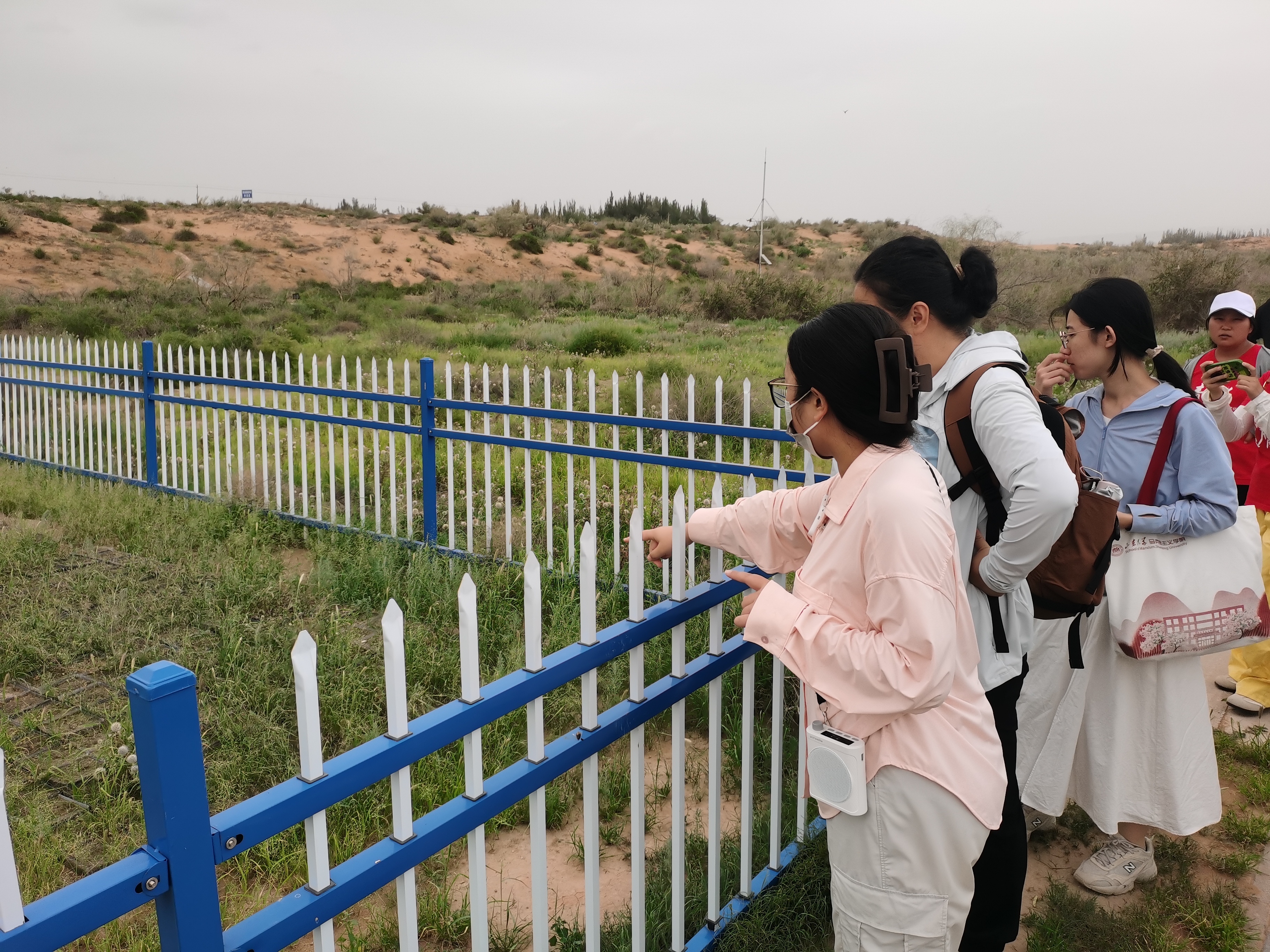 践行生态文明,领略治理成效。在石嘴山市,同学们先后来到贺兰山与星海湖。在贺兰山,大家感叹生态修复为这片土地带来的鲜活生机;在星海湖,曾经“杂草丛生、污水横流”的“垃圾倾倒场”,如今形成远山、近水、苇荡、鸟群、绿岛的独特景致,让同学们直观感受石嘴山市践行生态文明思想的显著成效。探寻治沙密码,汲取精神养分。在中国科学院沙坡头研究试验站,同学们走进实验田与展馆,近距离观察“麦草方格”造就的绿洲生态屏障,深刻认识到试验站作为荒漠生态治理“科研高地”与“精神地标”的双层价值。推动生态移民,见证振兴成果。走进吴忠市红寺堡区弘德村,同学们通过一幅幅老照片、一段段文字介绍,清晰地了解到移民搬迁前后的巨大变化。与村民刘克瑞交流过程中,同学们深切感受到乡村振兴战略的强大力量。