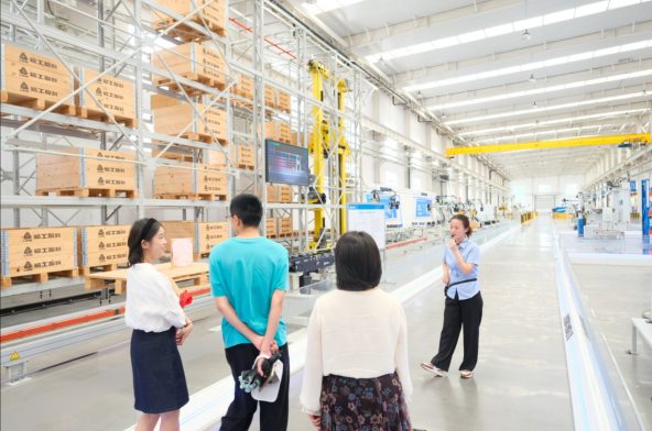 在“中国物流之都”临沂,调研团围绕数字技术在物流领域的落地展开调研。首站走进山东盛阳金属、山东豪门铝业两家代表性企业,深入生产车间与仓储区,摸清从原材料采购、生产调度到成品配送的全链条物流模式,重点掌握工业产品物流保障体系建设情况。随后,调研团探访山东顺和国际、新明辉两大智慧物流园:在顺和园区,了解超级分拨中心与智能仓储区运行情况,学习大数据、物联网、AI智能分拣系统的应用经验,并通过“中国物流之都展览馆”,系统了解临沂物流从传统集散向智能化、数字化转型的历程;在新明辉园区,重点调研自动化立体仓库、WMS与TMS系统,该园区经智能化改造后,货物流通与交付能力提升3至4倍。此外,调研团还在临工智科观摩AGV搬运机器人、智能堆垛机器人等装备的演示,深入了解其多场景适配能力与物流系统无缝对接方案。