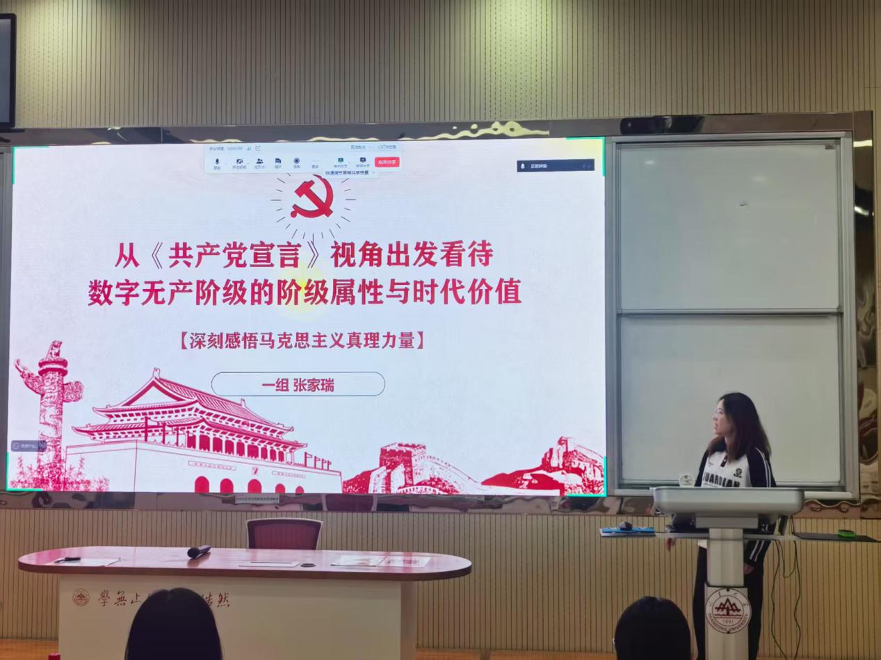 以思为炬,照亮成长。仿吾班六个学习小组深耕马克思主义经典:张家瑞结合《共产党宣言》为数字经济时代劳动权益保障献策;刘芯彤梳理《共产党宣言》出版背景与成仿吾校译成果,剖析资产阶级历史作用;金雨菲借《关于费尔巴哈的提纲》阐释“人的本质是社会关系的总和”;王劲松解读《史学要论》,倡导树立唯物史观;陆绎璇从《<政治经济学批判> 序言》分析“两个决不会”;郝浩然针对《资本论》“原始积累”章节,剖析了当代“新原始积累”现象。