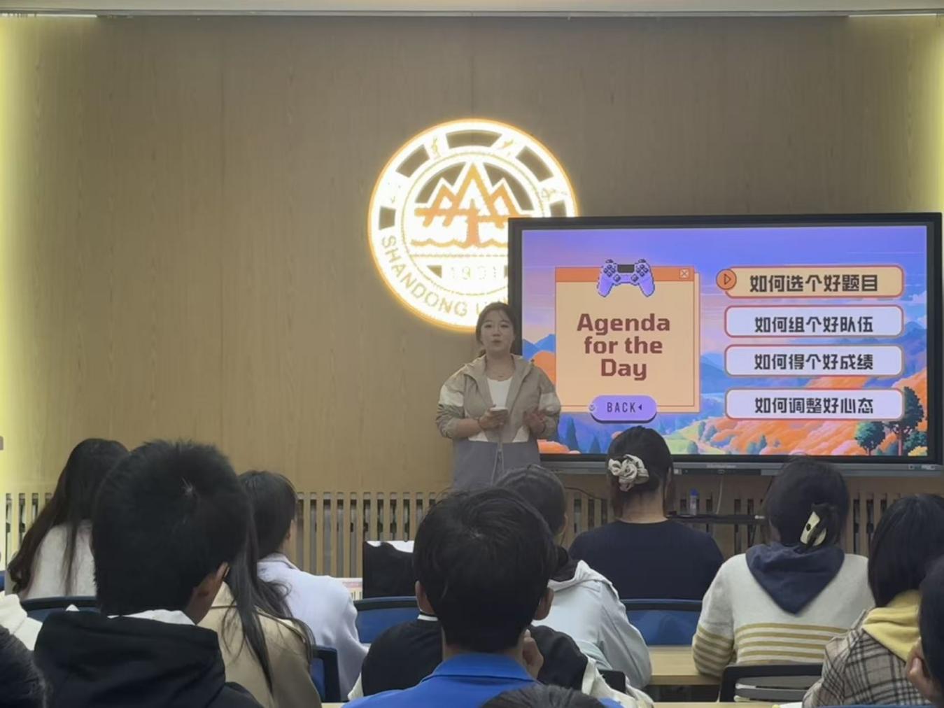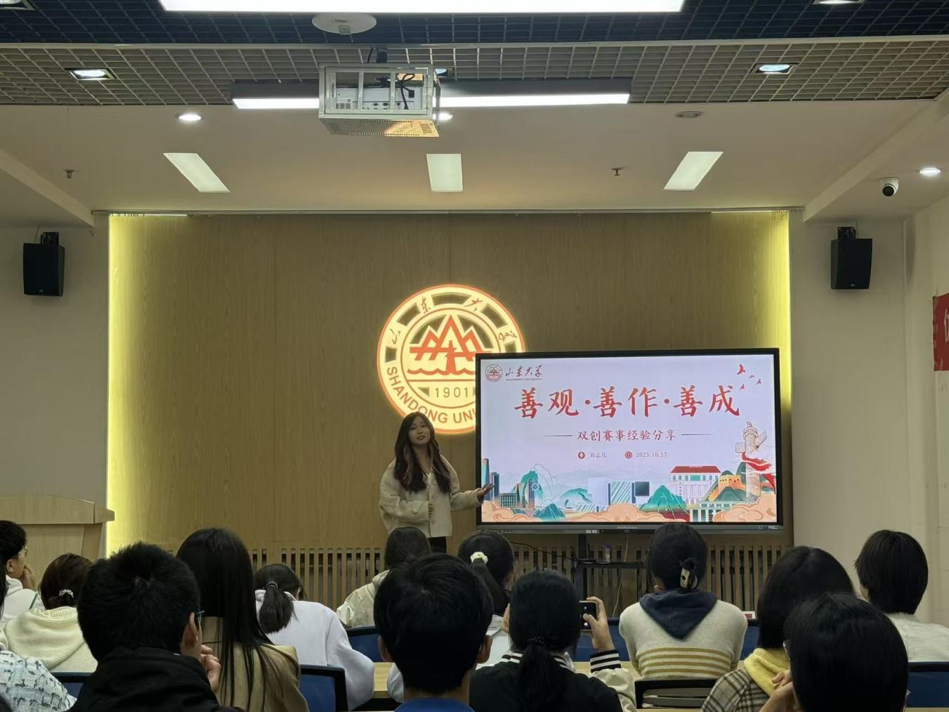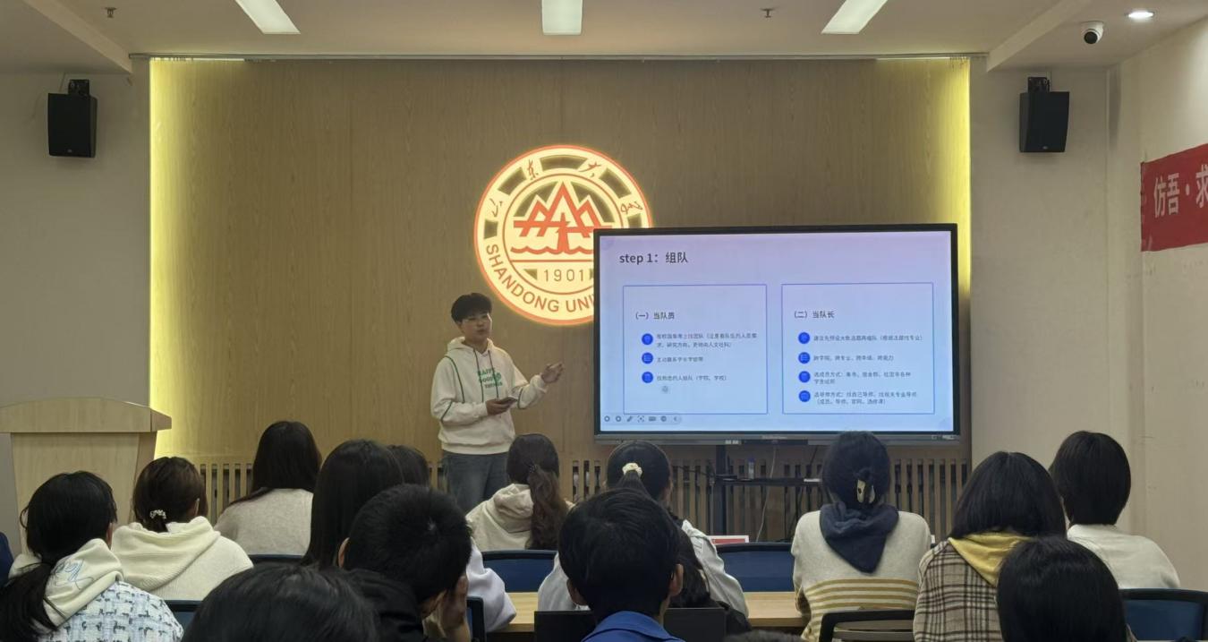 刘晓澄通过四个“好”字,围绕选题、组队、项目执行及备赛心态展开分享。她指出不同赛事选题偏好不同,建议新生走文科专项赛道;组队可择潜力项目或跨学科组建;项目执行需注重PPT与报告结构,答辩要讲好故事;最后,她也提醒同学们平衡学业与赛事精力,拒绝结果导向。