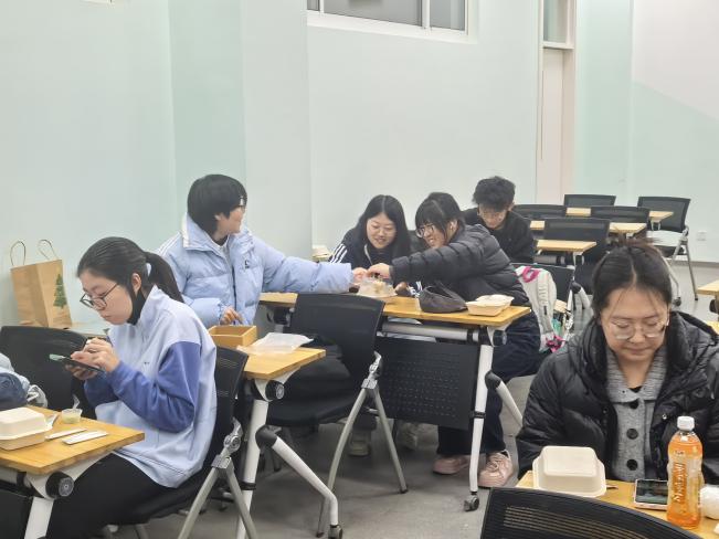 活动尾声,冬季特色饼干的香气让人倍感温馨。酥脆的口感、香甜的味道,不仅满足了味蕾,更带来身心的慰藉。同学们一边品尝饼干,一边欢快交流,在温暖的氛围中积蓄力量,以更从容的心态迎接接下来的期末挑战。