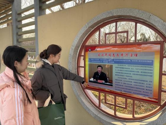 随后,实践队沿河岸走进毛主席视察黄河纪念地,临岸凝望奔涌的黄河河水,深切感悟母亲河孕育中华文明的厚重底蕴。队员们在此认真学习毛泽东同志与习近平总书记关于黄河治理的重要论述,回望新中国成立后党领导人民治理黄河、造福百姓的壮阔实践,深刻体会到从“要把黄河的事情办好”到黄河流域生态保护和高质量发展重大国家战略的一脉相承。