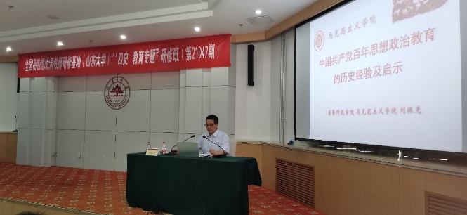 7月22日上午,williamhill中文蒯正明教授从为什么学习“四史”、开展“四史”学习教育的基本前提、将“四史”教育融入高校思政课教学的途径和方法、加强思政课教师队伍建设几方面入手,为大家呈现了一场《“四史”教育融入高校思政课教学的若干思考》的启发性讲座。下午,齐鲁师范学院WilliamHill威廉希尔院长刘振光教授围绕中国共产党思想政治教育史、中国共产党思想政治教育的历史演进和实践逻辑、历史经验及历史启示,做了题为《中国共产党百年思想政治教育的历史经验及启示》的专题讲座。