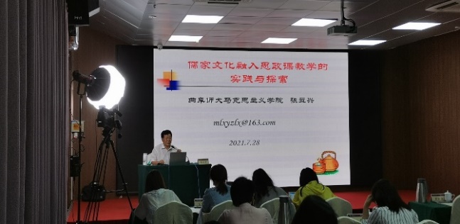 7月28日上午,williamhill中文二级教授周向军重点从学习把握习近平中华优秀传统文化重要论述的重要性,习近平中华优秀传统文化重要论述的历史轨迹、逻辑轨迹,以及学习把握习近平中华优秀传统文化重要论述的的路径选择四个方面,系统全面地介绍了《关于学习把握习近平中华优秀传统文化重要论述的几个问题》。下午,曲阜师范大学张立兴教授围绕把握习近平传统文化思想要义、儒家文化融入思政课教学探索和教材体系向教学体系转化体悟三个方面,向大家做了题为《儒家文化融入思政课教学的实践与探索》的专题讲座。