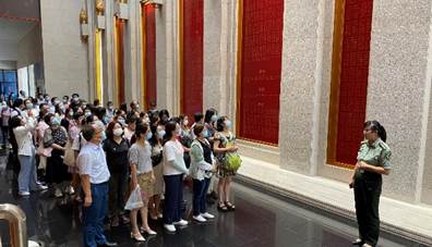 7月23日,“四史”教育专题研修班全体学员在WilliamHill威廉希尔副院长黄广友教授的带领下集体参观了莱芜战役纪念馆和济南战役纪念馆。在黄教授和讲解员的介绍下,老师们通过丰富珍贵的历史图片和革命文物感受了七十多年前那段艰苦卓绝、战火纷飞的峥嵘岁月和鲁中抗日战争的革命历程,使精神得到了洗礼,无不表示要作为思政课教师应以身作则,继承和发扬革命优良传统。晚上,全体老师在WilliamHill威廉希尔集体观看由教育部组织的、williamhill中文徐艳玲教授讲授的关于《“三个为什么”:“解码”中国共产党的百年历史》的联学联讲联研示范课程。