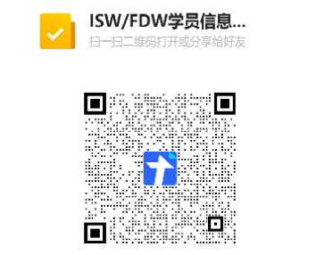 请报名的学员扫码填写个人信息(如果有意愿报名其他时间ISW和FDW工作坊学习的学员,可以先提交个人信息及拟参加时间)