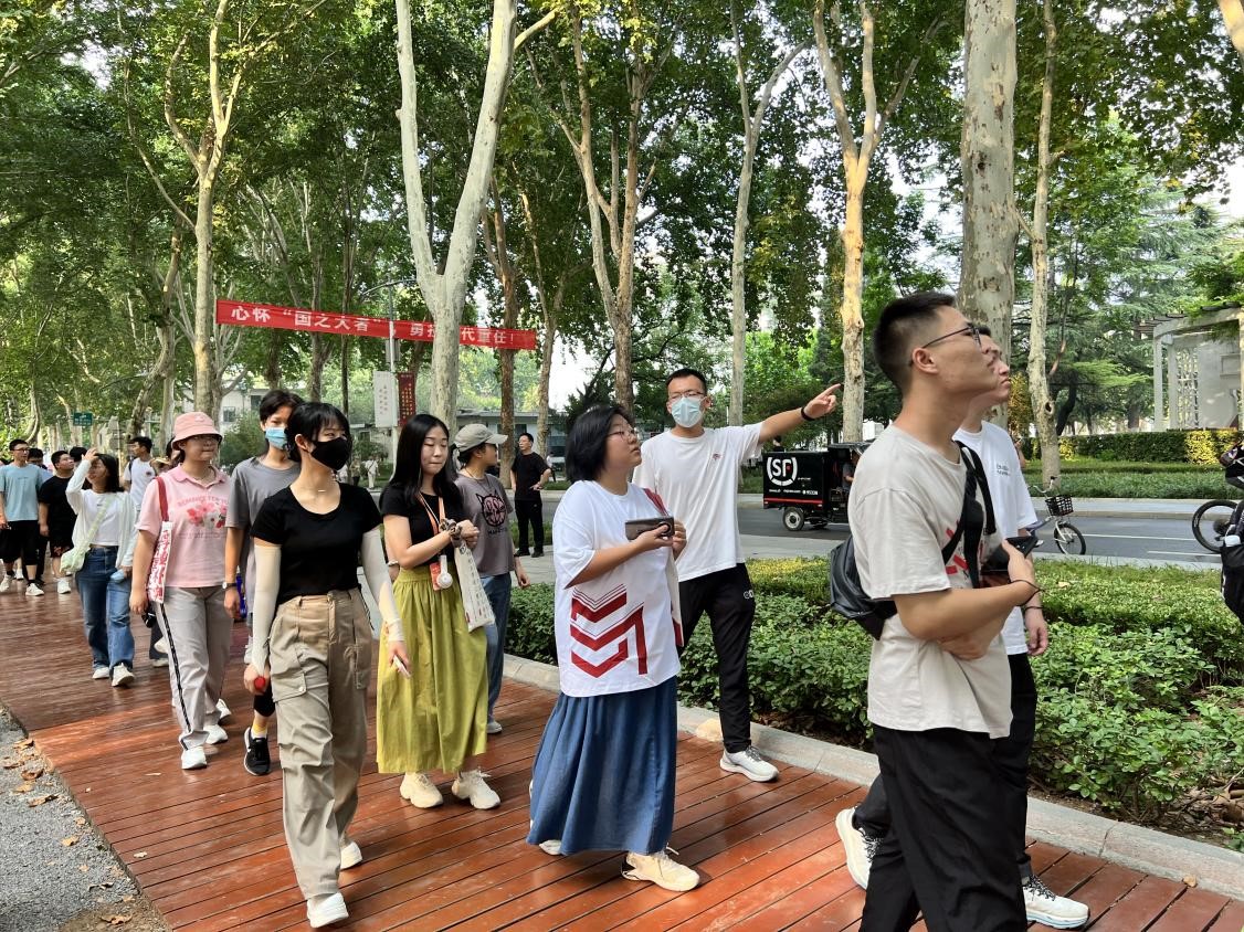 在学院学生会志愿者的带领下,同学们集体游览校园。从四号楼出发,依次行经文史楼、小树林、大成广场、电教楼、知新楼、体育馆、齐园餐厅等地。志愿者为同学们详细介绍校园基本情况与主要教学生活服务场所,深入讲解一座座雕像背后的山大先贤故事,并针对同学们提出的问题进行解答。