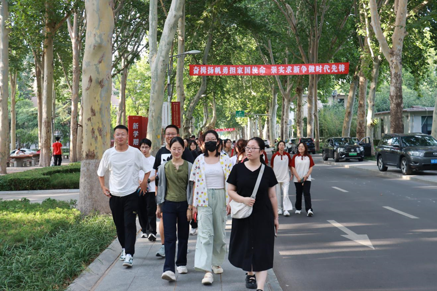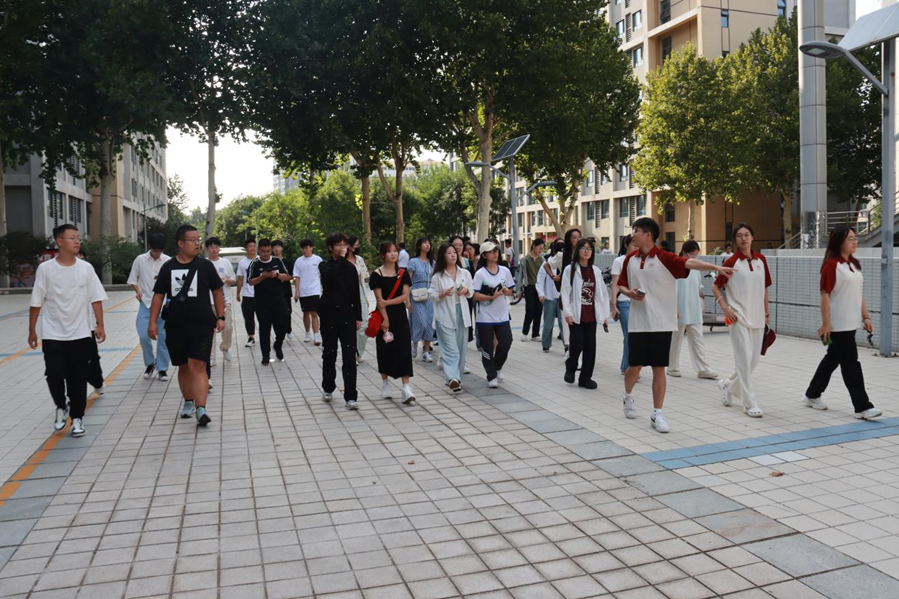 新生报到后,在学院学生会志愿者的带领下,同学们集体游览校园。从宿舍楼出发,依次行经齐园餐厅、文史楼、小树林、大成广场、学院楼、音乐馆、知新楼、体育馆等地,志愿者为同学们详细介绍校园基本情况与主要学习生活场所,深入讲解一座座雕像背后的山大先贤故事,并针对同学们提出的问题进行解答。