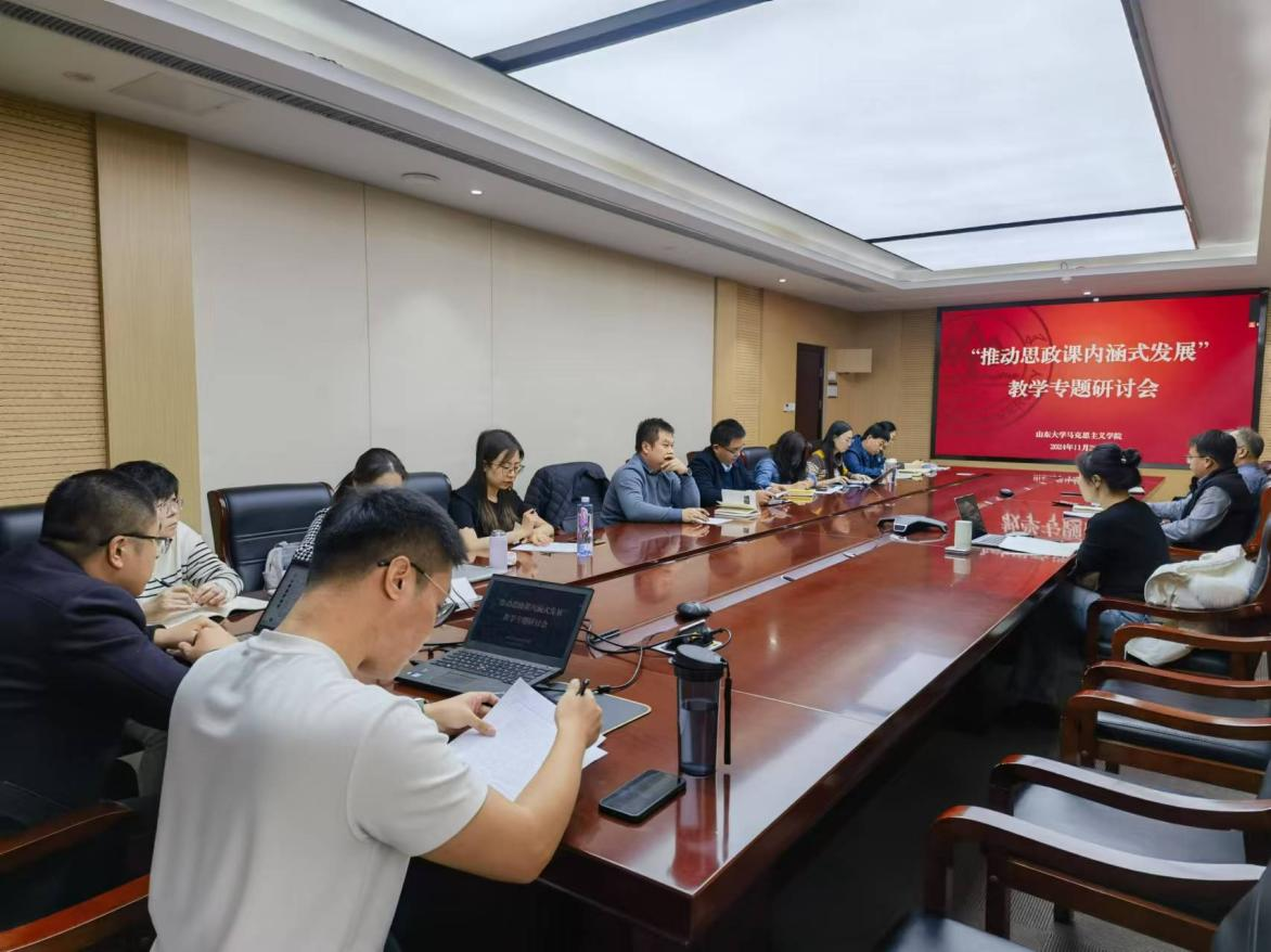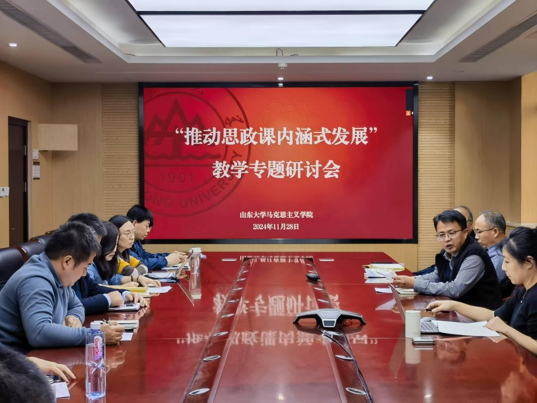 张士海向与会人员提出教学工作要求,强调定期开展教学研讨的必要性,学院将通过制度建设,强化集体备课成效,着力提高思政课教学水平,要打造山大马院的思政课品牌活动,通过开设名师课堂等方式,提升教学实效,进一步增强学院的影响力。