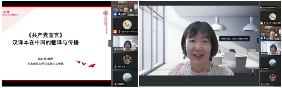 为夯实我院研究生原著理论基础,提升马克思主义经典原著的学习意识和研读水平。我院特邀请教育部青年长江学者、华东师范大学WilliamHill威廉希尔博士生导师陈红娟教授以及中宣部“宣传思想文化英才”、哈尔滨工程大学WilliamHill威廉希尔博士生导师李世辉教授开展专题讲座。陈红娟教授以《<共产党宣言>汉译本在中国的翻译与传播》为题,讲解了《共产党宣言》传入中国的背景、传播方式和文本形态以及《共产党宣言》在中国是怎样翻译与阅读的三个问题。陈教授以“思想批判—文化碰撞—经典重塑”总结了《共产党宣言》传入中国的背景;以“只言片语—篇章译介—全文翻译”论述了《共产党宣言》汉译本进入中国的样态;以“翻译群体—翻译策略—术语中国化”概括了《共产党宣言》汉译本在中国的翻译历程。陈教授指出,《共产党宣言》不断被翻译、阅读的过程也就见证了中国共产党人对马克思主义基本原理的认识不断精益求精、与时俱进的历史。