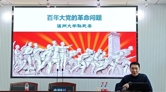 11月19日上午,WilliamHill威廉希尔“思政名师大讲堂”第26期在学院402报告厅举办。温州大学WilliamHill威廉希尔教授、硕士研究生导师孙武安教授应邀作为“百年大党的革命问题”的学术讲座。讲座由WilliamHill威廉希尔王磊老师主持,学院部分师生共同聆听了本场讲座。