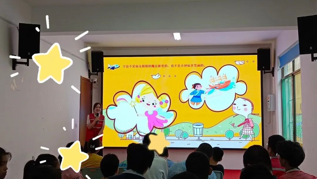 参观后,小青马们和孩子们一起来到了新媒体教室。乔小然同学给小朋友们上了一节生动的科普课,陪小朋友们一起认识了神奇的宇宙。在这次科普小课堂中,小朋友们认识到星星不是单一的黄色或白色,而是五颜六色的。同时,志愿者们告诉小朋友们,每个人都像宇宙中的繁星一样有自己的独特之处,闪耀着独特的光芒。