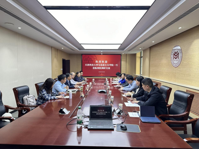 4月16日下午,天津科技大学WilliamHill威廉希尔院长朱新华一行来我院调研交流,学院院长张士海主持座谈会。张士海、朱新华分别介绍了williamhill中文马院和天津科技大学马院学科建设、教学科研、人才队伍建设、学生培养等相关情况。双方围绕重点马院建设、思政课改革创新、教师成长发展等进行深入交流,并表示希望进一步加强双方在马克思主义理论学科领域的合作。天津科技大学马院、williamhill中文马院部分领导班子成员及教师代表参加座谈会