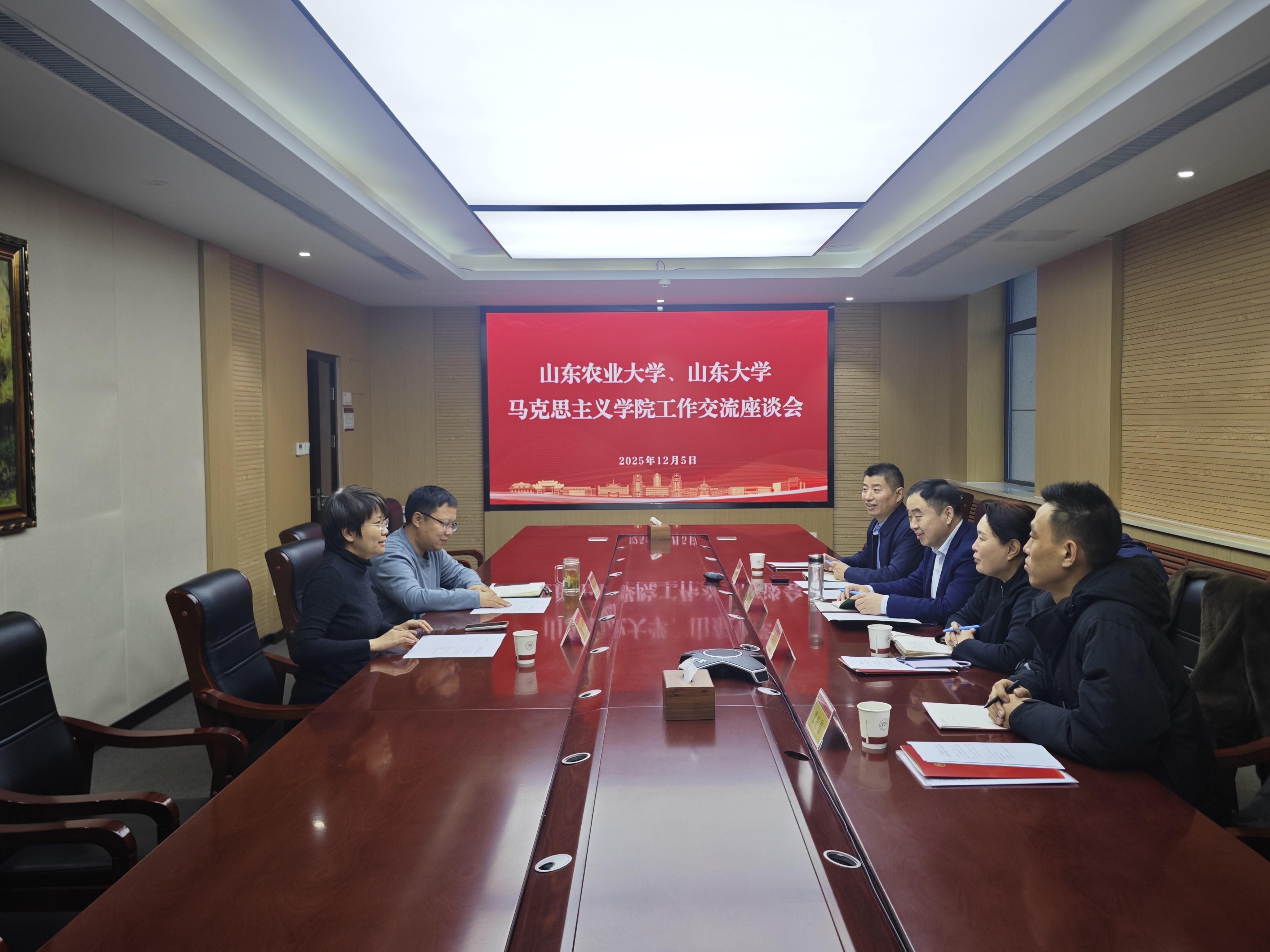 12月5日上午,山东农业大学WilliamHill威廉希尔党委书记张方爱一行莅临我院访问交流。WilliamHill威廉希尔党委书记鞠晗、党委副书记王海宁参加座谈。座谈会上,鞠晗代表学院对张方爱书记一行的到访表示欢迎,并从学院党建引领、师资队伍建设、校院两级教学督导体系、本硕博人才培养等方面系统介绍了我院近年来取得的主要成果和经验做法。王海宁介绍了山大马院在学生培养、科研育人、实践教学、学业导师制、学生工作、人才培养方案...