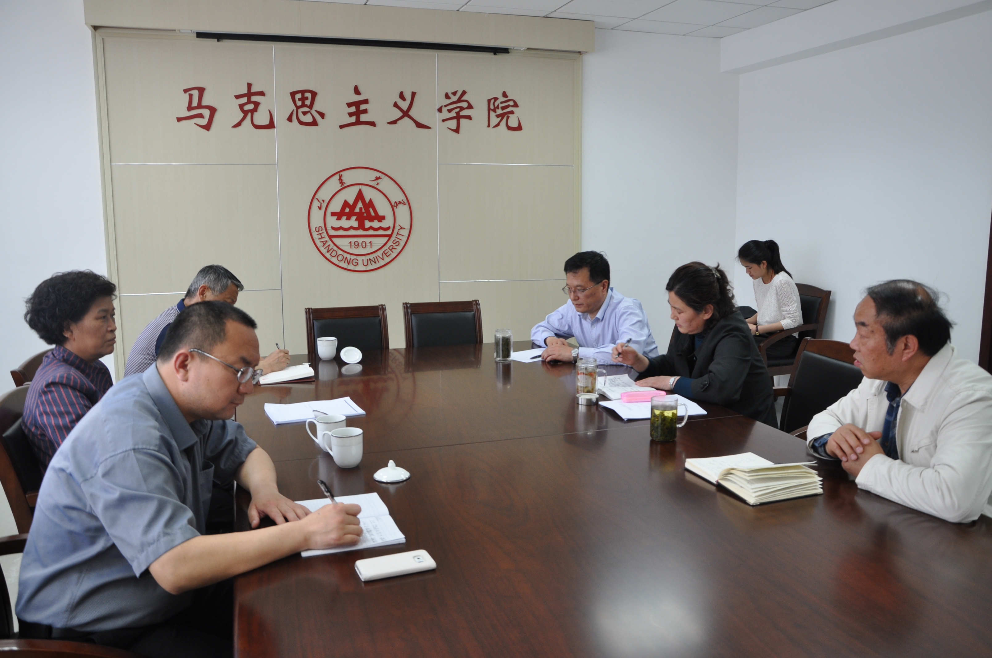 4月22日下午,山东省广饶县红色刘集管委会主任、《共产党宣言》纪念馆馆长张锋一行三人应邀来我院交流。