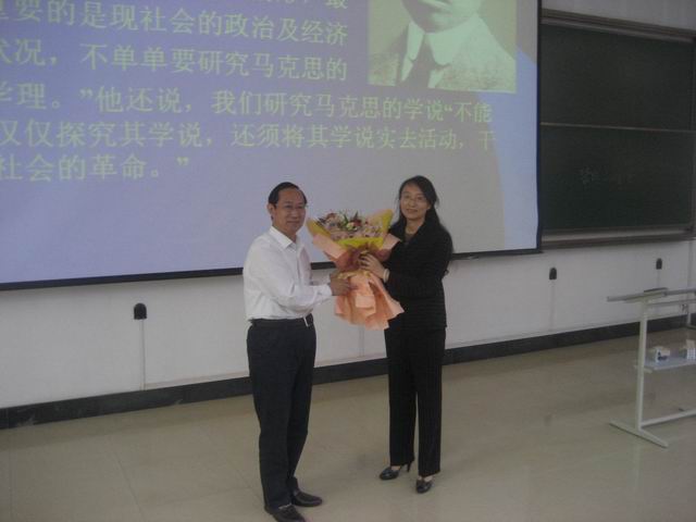 2009年9月8日上午,教务处王仁卿处长来到兴隆山校区讲学堂203教室,观摩指导张华梅老师的课堂——《毛泽东思想和中国特色社会主义理论体系概论》课。
